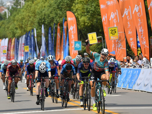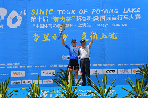 上午9點半,來自中國、美國、澳大利亞、法國、泰國、印度尼西亞等國家以及中國港澳臺地區等25個國家和地區的117名專業自行車手以上猶縣文體中心為起點,途經猶江大道、文峰南路、迎賓大道、希望大橋等地,在上猶縣城繞5圈后一路向西騎行至陡水湖國家級森林公園繞2圈后折返上猶縣文體中心進行終點沖刺,全程89.7公里。經過兩個多小時速度與耐力的比拼后,來自德國助力車隊的小個子選手盧卡斯?卡斯滕森率先沖線獲得冠軍,第二、三名分別是中國香港捷迅車隊選手瑞安?威廉?羅特和澳大利亞新南威爾士車隊選手班杰明?盧克?哈。最佳大中華(粉紅冠軍衫)獲得者是在第九屆環鄱賽上表現優異、江西首支本土車隊――中國江西新力物業車隊的選手彭源堂;個人總成績(藍冠軍衫)獲得者是本站冠軍盧卡斯?卡斯滕森;登山王(圓點冠軍衫)穿在了烏克蘭飛銳車隊選手米阿格馬蘇倫?巴桑丘身上;沖刺王(橙冠軍衫)則被美國瑪吉斯野生世代洲際車隊選手肯特?貝爾納迪尼?羅斯收入囊中。團體第一名是本站冠軍所在的德國助力車隊。