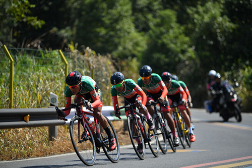 本賽段采用的是團(tuán)隊(duì)計(jì)時(shí)賽方式,全程28.9公里,起點(diǎn)位于仙女湖廣場(chǎng),終點(diǎn)設(shè)在圣集寺。車隊(duì)的出場(chǎng)順序由前三站的成績(jī)累計(jì)決定,前三站表現(xiàn)略遜一籌的車隊(duì)率先出發(fā),出發(fā)時(shí)間相隔兩分鐘,成績(jī)最好的車隊(duì)的壓軸出發(fā),以各隊(duì)第四名隊(duì)員抵達(dá)終點(diǎn)的成績(jī)?yōu)檐囮?duì)的參賽成績(jī)。沒有了前三站大團(tuán)體追逐競(jìng)速的雄偉場(chǎng)面,今天仙女湖畔的旖旎風(fēng)光間,呈現(xiàn)的是每隊(duì)5-6名運(yùn)動(dòng)員配合默契的高速騎行畫面,曲折多彎的環(huán)湖賽道考驗(yàn)的是車手們高超的車技、高度集中的精神和完美的團(tuán)隊(duì)?wèi)?zhàn)術(shù)。經(jīng)過一番緊張激烈的競(jìng)逐,德國(guó)助力車隊(duì)選手憑借均衡的綜合實(shí)力和默契的配合,僅以36分47秒完成比賽,站在了本站賽事的最高領(lǐng)獎(jiǎng)臺(tái)上,這也是該車隊(duì)在遭遇昨日萍鄉(xiāng)武功山賽段的失利后重新站上最高領(lǐng)獎(jiǎng)臺(tái)。緊隨其后獲得第二、三名的是分別以36分59秒、37分02秒沖線的美國(guó)瑪吉斯野生世代洲際車隊(duì)和中國(guó)云南綠山園林車隊(duì)。與前一站相比,四色領(lǐng)騎衫僅有最考驗(yàn)綜合實(shí)力的個(gè)人總成績(jī)(藍(lán)冠軍衫)易主,穿在了本站冠軍車隊(duì)――德國(guó)助力車隊(duì)選手阿德內(nèi)?威廉簡(jiǎn)身上,其他三色領(lǐng)騎衫與上一站相同,分別是:美國(guó)瑪吉斯野生世代洲際車隊(duì)選手肯特?貝爾納迪尼?羅斯獲沖刺王(橙冠軍衫);法國(guó)國(guó)防車隊(duì)選手朱利安?阿馬多利勇奪登山王(圓點(diǎn)冠軍衫);中國(guó)江西新力物業(yè)車隊(duì)選手彭源堂第四次蟬聯(lián)最佳大中華(粉紅冠軍衫)。